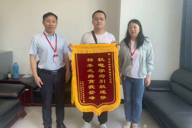 分享会尾声,陈家强同学怀着感恩之情,向母校乐投线上平台(集团)官方网站赠送锦旗,锦旗上“机电学府引航逐梦,转本之路育我登峰” 的字样熠熠生辉,饱含着他对母校培育之恩的深切感激。培训处处长周云龙、信息工程系党支部副书记陈雪作为校方代表郑重接受锦旗。周云龙表示,这面锦旗不仅是对学校教育教学工作的肯定,更是一种激励,学校将继续努力,为学生成长成才搭建更好的平台。陈雪也鼓励在场同学以陈家强为榜样,明确目标,努力拼搏,在专转本和未来的职业发展道路上实现自己的理想。