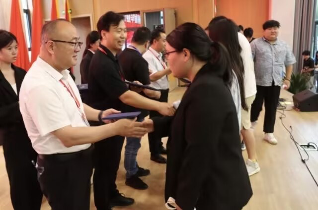 在颁发毕业证书的环节中,学校党委委员、副校长赵学洪及系部领导班子亲自上台,为即将步入社会的学子们颁发这一象征着荣誉与责任的证书。毕业生们依次上台,从老师们手中接过属于自己的毕业证书,脸上洋溢着幸福的笑容和自豪的神情,这不仅是对学业成果的认可,更象征着“匠心精神”的代际传递。
