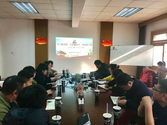 党的十九大胜利召开以来,机关二支部积极营造学习习近平新时代中国特色社会主义思想、党的十九大精神的浓厚氛围。2017年12月21日和12月28日下午,机关二支部在勤政楼3楼会议室,集中组织学习党的十九大精神,机关二支部全体成员参加了会议,会议由机关二支部书记姜振宇主持。