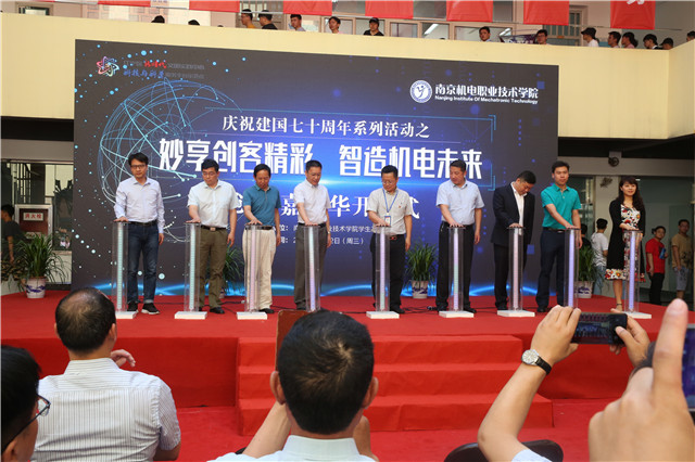 为激发广大创客创新潜能和源动力,传达创客生活方式,展示创客校园建设成果,丰富创客文化,促进创客交流,探讨创客教育的理论与实践,引领创客教育,2019年5月22日,乐投线上平台(集团)官方网站庆祝中华人民共和国成立70周年系列活动之“妙享创客精彩 ,智造机电未来”2019年第三届创客嘉年华在学院知行楼中庭举行了盛大的开幕仪式。乐投线上平台(集团)官方网站党委书记、院长周庆礼、南京机电产业集团党委书记、总经理卢北宁、南京市教育局职教教研室主任章鸿、南京工程学院工业中心副主任,创新创业学院副院长陈巍 、江宁科学技术协会副主席姚本祥、南京市东山小学副校长李一婷等校内外领导和嘉宾出席了开幕仪式。