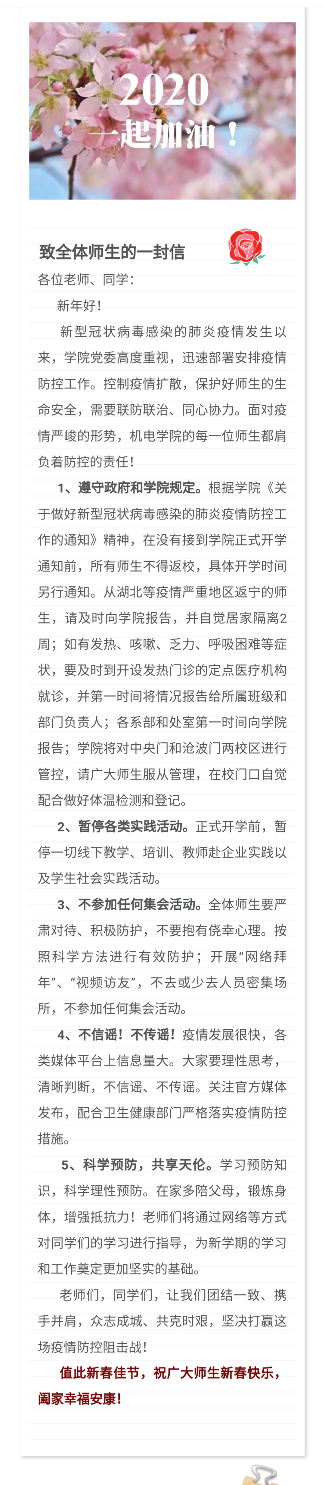 致乐投线上平台(集团)官方网站师生的一封信