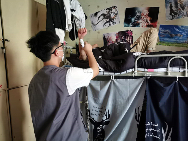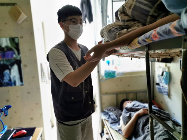 然而,在这个重要的时期有那么一群人,勇担当,敢作为,积极投身抗疫志愿服务,用青年力量传递抗“疫”温度。他们在晨露未晞之时,就已经穿上灰马甲,开始了一天忙碌的志愿服务工作。只要你起得够早,你就会看见每一楼层、每一件宿舍都会有他们忙碌的身影。自然,每日的健康监测、测量体温、督促学生早点休息也成为了他们必不可少的行程。不仅如此,在你看不到的地方,他们也在暗自发光,为我们默默的付出。