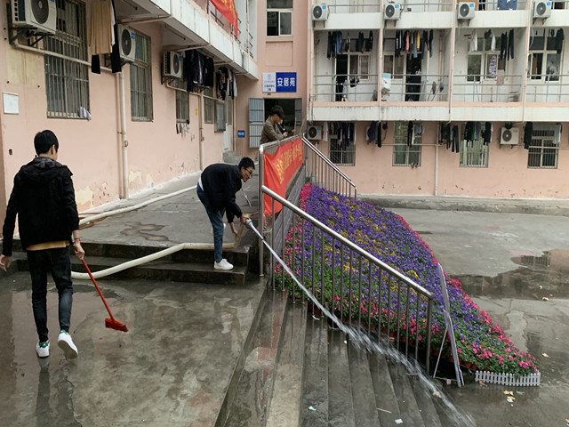 宿舍,是由许多远离家乡,说着不同语言,有着不同姓氏的同学们组成的另一个温暖的家。忧愁时,在这里,你会得到他人的帮助;失意时,在这里,你会得到心灵的慰藉。总之,宿舍是我们携手共度、互相扶持的港湾。因此,为了确保同学们有个整洁、优美的生活和学习环境,2020年11月10日,宿管会成员在指导老师张进宝老师的带领下,对各楼栋附近的卫生进行了大扫除。