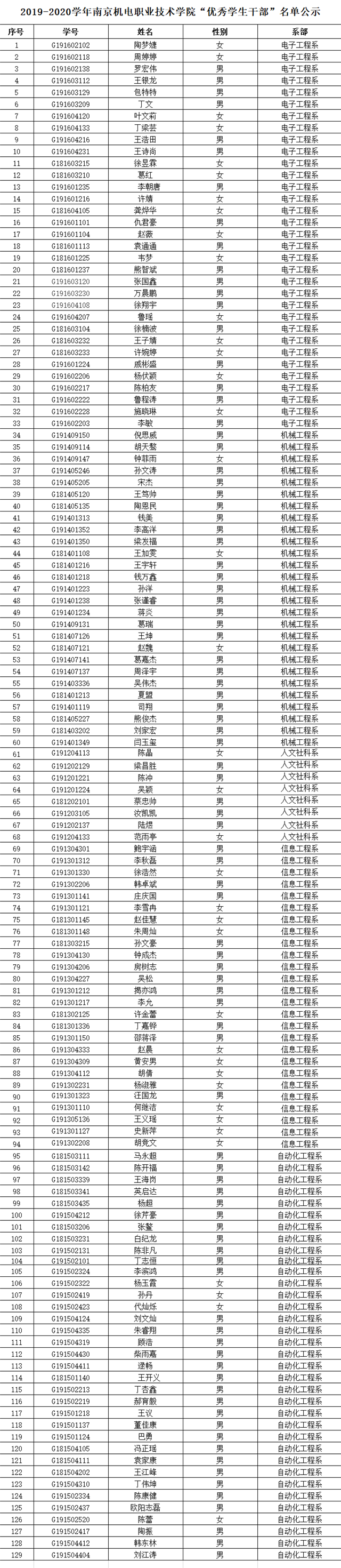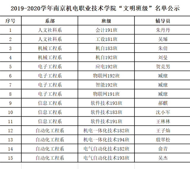 根据《乐投线上平台(集团)官方网站2019-2020学年三好学生、优秀学生干部、文明班级评选通知》规定,经学生本人申请、班级评议,系部审核推荐,学工处核准,学校审批,在公平、公正、公开的基础上,拟评选出以下个人和班级为2019-2020学年乐投线上平台(集团)官方网站“三好学生”、“优秀学生干部”、“文明班级”,现将名单公示如下。