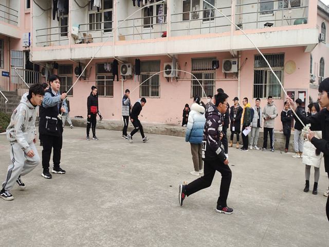 12月23日中午12点半宿管会于学生公寓广场上举行了一场别开生面、精彩缤纷的跳长绳比赛。此次比赛是为了活跃和丰富宿舍文化生活,让学生在享受阳光体育的同时,也能充分展示出集体和个人别样的风采。