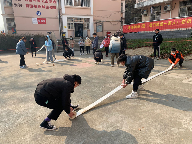 为了加强宿舍安全管理,提高同学们的防火意识,增强在火灾中的自救能力,2020年12月24日在学生公寓广场举行了第七届宿舍文化节“放开他,让我来”消防水龙带收放大比拼。