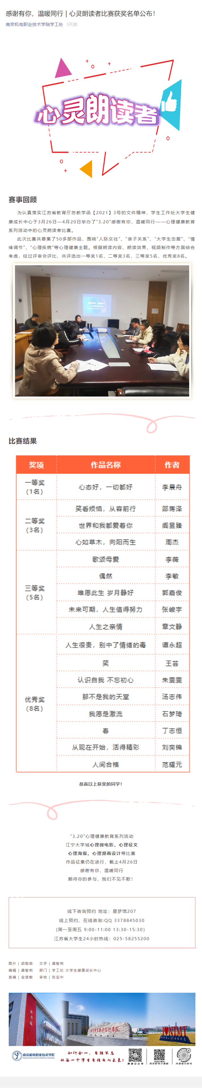 感谢有你,温暖同行 | 心灵朗读者比赛获奖名单公布!