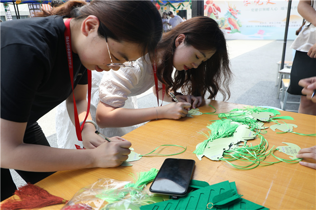 学院党委委员、工会主席姜振宇、学生工作处处长张宝中皆亲临现场写下祝福话语并亲手制作香包,给广大的学生们送去了节日的温暖和祝福。