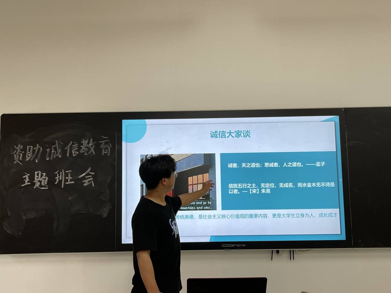 为了进一步提倡同学们树立良好的诚信品质,养成“诚信为本”的好习惯,我院信息工程系于2021年5月31日18:00在博学楼107进行了大学生资助诚信教育班会。信息系宣传大使丰凡顺同学担任主讲。信息工程系全体受资助同学参加了本次主题班会。