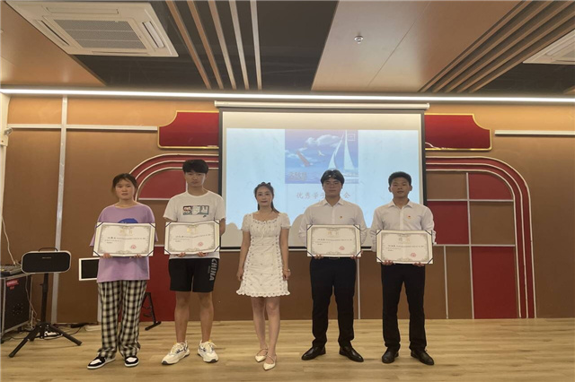 分享会临近结尾,院学生会指导老师王晨歌、学生工作处老师吴靖为2021年资助诚信教育活动月中获奖的同学颁发荣誉证书。大学生资助管理中心干事华维为2019级资助大使颁发聘书并一同合影留念。相信这是对同学们的鼓励,也是对他们的督促。
