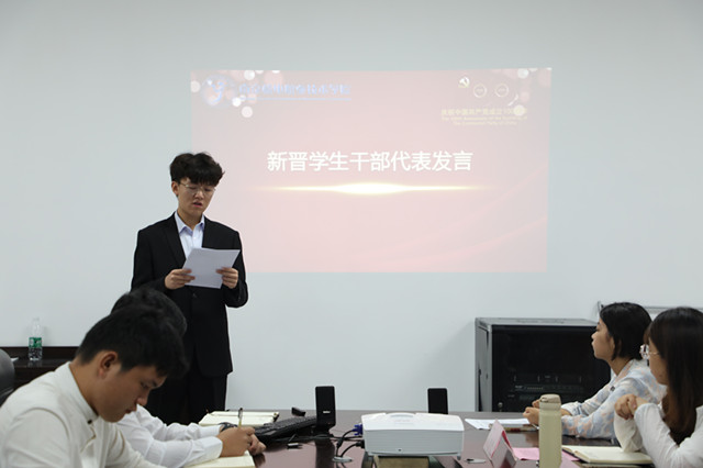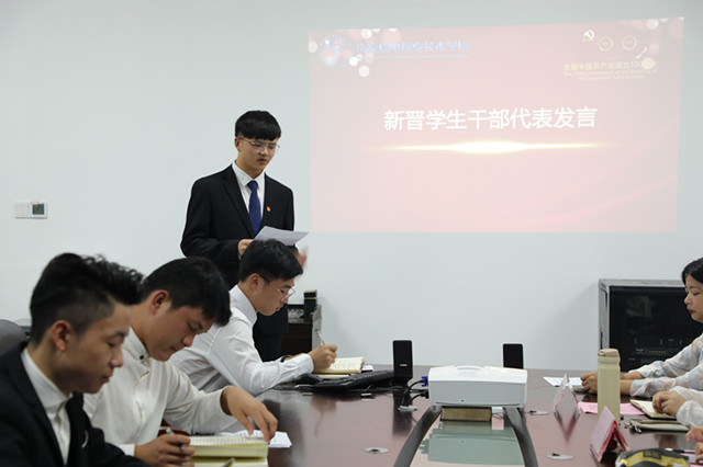 会议过半,不舍离别,续写梦想。薪火相传,生生不息。新一届学生组织负责人代表进行宣讲。