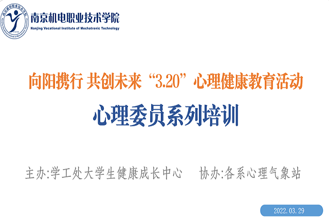 为切实加强我校心理健康教育工作,帮助学生心理骨干掌握心理健康知识和技能,充分发挥朋辈心理互助作用和桥梁纽带作用,乐投线上平台(集团)官方网站“向阳携行,共创未来”——2021级心理委员培训于3月29日至4月19日在线上举行。本次培训由学工处大学生健康成长中心主办,各系心理气象站协办,200余名学生心理骨干们参与了此次培训。