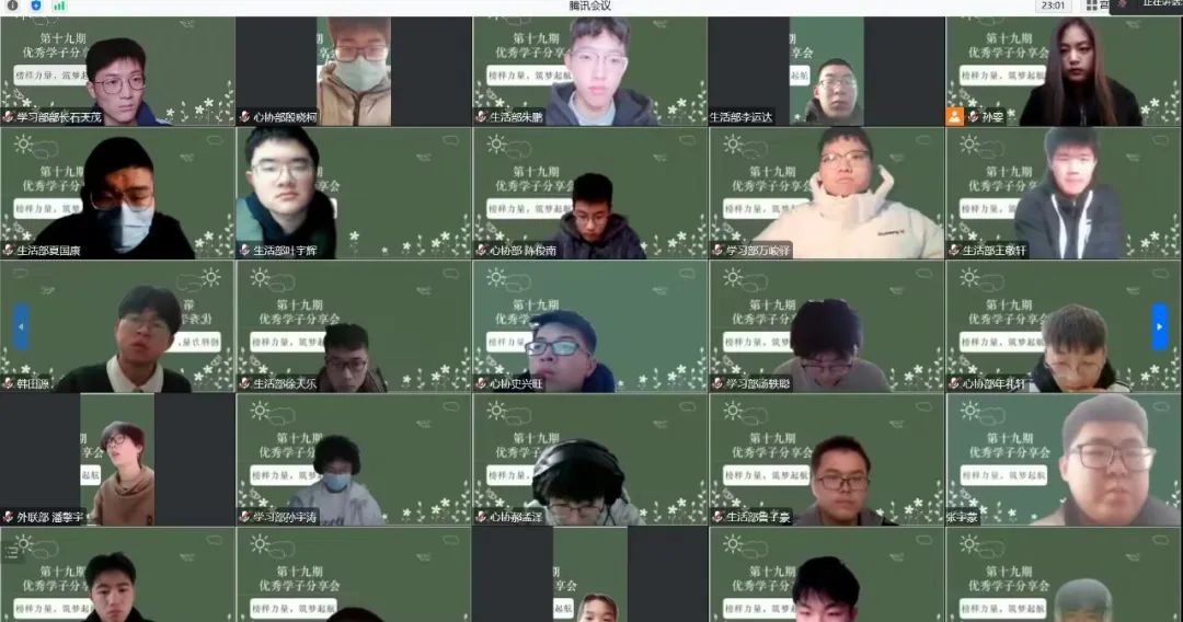 为进一步教育引导广大学生听党话、跟党走,争做堪当民族复兴重任的时代新人,引导广大学生深学细悟、学懂弄通、知行合一,全面推动学习宣传贯彻党的二十大精神在学生中走深走实。2023年1月11日下午,校学生会通过线上腾讯会议顺利开展第十九期优秀学子分享会。本次分享会由机械工程系主席韩田源担任主讲人,校学生会副主席孙雯担任主持人,各系一百余名同学参加本次活动。