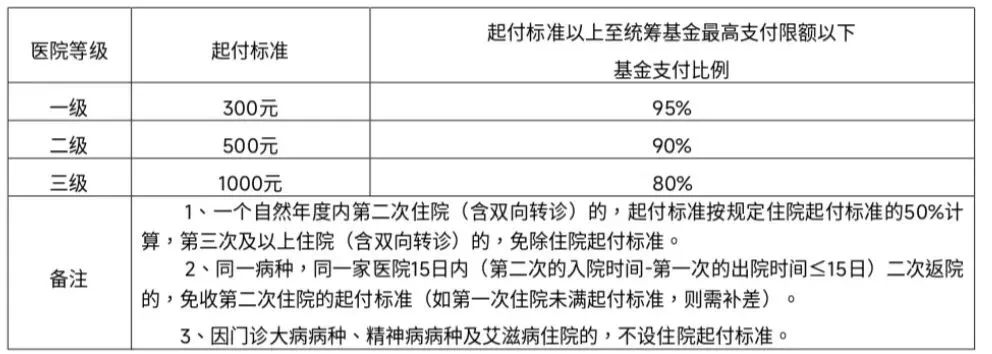 在一个待遇年度内(1月1日—12月31日)发生的符合城乡居民医疗保险支付范围的医疗费用,起付标准以上部分,基金按规定支付(有自付比例的药品和项目需个人先按比例支付),包括门诊待遇、门诊大病待遇、门诊精神病待遇、门诊艾滋病、住院待遇和生育医疗待遇等。
