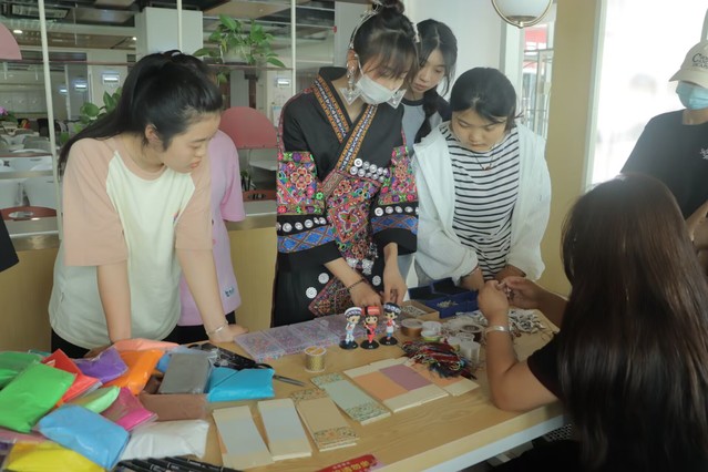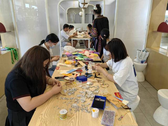 本次手工DIY活动分为编特色手绳、制作民族耳饰、用不同文字书写书签、粘土制作等四个项目。白族的谷蕊瞳介绍了各个手工项目的内容,并进行详细的教程讲解。随后,妙趣横生的DIY手工制作活动正式开始。同学们两两一组,兴致浓厚,积极参与,通过写书签、做民族耳饰、粘土、特色手绳、项链等方式,充分发挥自己的想象力和动手能力,认真地进行思考与制作,其乐融融,气氛热烈。经过三小时的团结协作,一件件精美的手工作品陆续完成。在活动中,各民族同学加深了感情,加强了互动,增进了友谊,锻炼了动手能力,更好地了解了丰富多彩的民族文化。