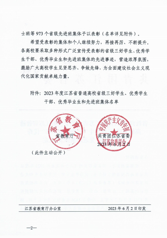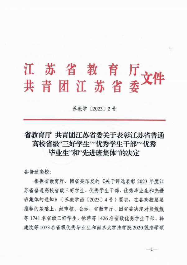 热烈祝贺我校电子工程系袁国强、谈云潇;人文社科系贾威;自动化工程系董子瑶、赵乾同学荣获“江苏省普通高校省级三好学生”。机械工程系茅旭升、孙俊杰;人文社科系王嘉伟;自动化工程系 袁子洋荣获“江苏省普通高校省级优秀学生干部”。机械工程系 衡爽爽;信息工程系 吕雯妮;自动化工程系潘婷同学荣获“江苏省普通高校省级优秀毕业生”。自动化工程系 机电一体化技术202班荣获“江苏省普通高校省级先进班集体”。