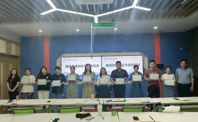人事处处长夏玲玲、学生工作处处长张宝中为培训辅导员代表颁发结业证书。