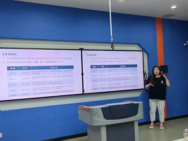 人文社科系辅导员吴瑶从生涯彩虹图、霍兰德职业兴趣、能力三核、生涯决策四个知识点展开分享,讲述了她在课堂教学中的领悟和应用技巧。