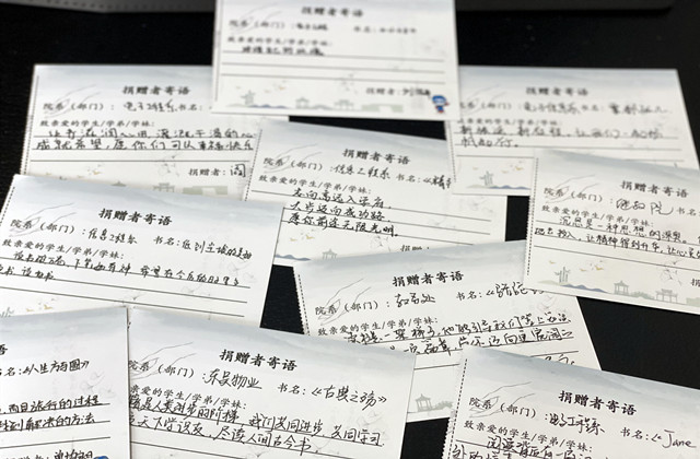一本好书就像一艘航船,引领我们从浅狭的港湾驶向无垠的海洋。在书的世界里,可以领略广阔的天地,欣赏壮丽的山河;可以知文史,品诗词歌赋;可以回味古老的悠长,眺望未来的瑰丽。读书,可以开阔我们的眼界,浸润我们的心灵,鼓舞我们的斗志,陶冶我们的情操。此次捐闲置书籍捐赠活动得到了全校师生的积极响应,纷纷捐赠图书,并在书中夹上对未来读者写下的暖心寄语。