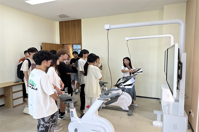 在个体咨询室,讲解员贴心地讲解了大学生在日常生活中遇到各类学业、人际、情绪、压力、自我认知等困扰时自我调节的方法,鼓励有需要的同学及时寻求专业帮助。在团体辅导室,讲解员向新生们科普了团体辅导相关知识并介绍了心理自助平台设备,同学们可以选择自己感兴趣的主题使用。在游戏沙盘室,不少同学表示是第一次接触沙盘,对沙盘游戏治疗这种神奇的工作方式充满兴趣。在文化长廊,讲解员结合图片向大家介绍了学校丰富多彩的心理健康教育活动,比如525心理游园会、心理电影赏析、户外团体辅导以及各类心理培训。此外,同学们积极地参与设备体验,觉得心理设备既“潮流”又实用,给同学们带来了不一样的感受。