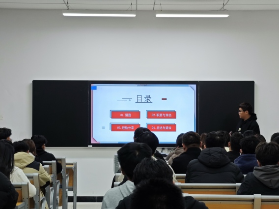 首先,无人机应用技术221的班长姚阳同学进行发言。他提出班长需要找准定位,明确职责,拥有良好的沟通能力和优秀的组织管理能力,还要维持班级纪律,组织班级活动。他给我们提出了以下五点建议:设立明确的目标、培养良好的学习习惯、保持积极的心态、坚持自我提升和把握每一个机会。