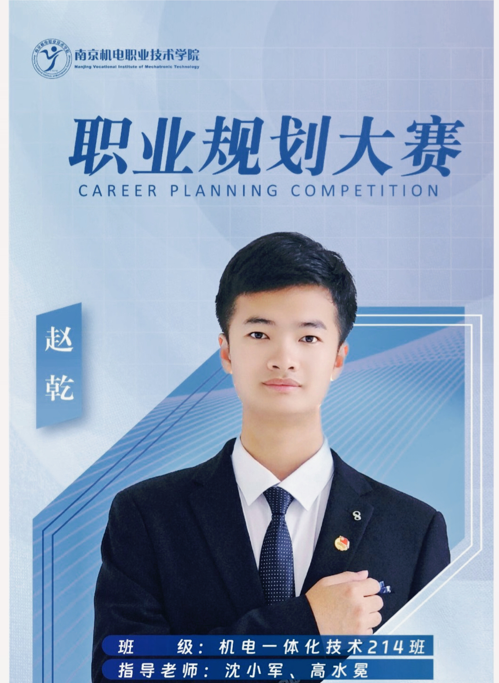 赵乾,就读于乐投线上平台(集团)官方网站,自动化工程系机电一体化技术专业 2021级学生。在校担任自动化工程系学生会主席、机电214班长等职务。曾获2022-2023学年“国家奖学金”;2021-2022学年“国家励志奖学金”;2023年度江苏省“三好学生”;第十八届“挑战杯”全国大学生课外学术科技作品竞赛江苏省二等奖;2023年江苏省职业院校创新创业大赛三等奖;第八届江苏省“互联网+”大学生创新创业大赛三等奖等荣誉。