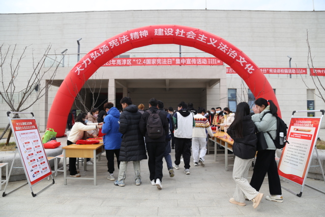 12月4日10:00——12:00在我校食堂正门广场,高淳区各政法部门面向我校师生进行宪法、民法典、反诈骗等普法教育宣传。参与的同学们认真学习宪法和法律知识,了解自己的基本权利和义务,提高自己的法治观念。同学们表示,通过本次活动学到了很多,要坚持向社会传递宪法精神,推动社会形成尊重宪法、尊重法律的良好氛围。