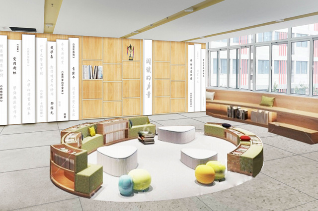 书是扁舟,载我们向目的地行驶。书是阶梯,帮助我们登上理想的高峰。是饥饿时的美餐,是心中的启明星。在共享空间里,那宁静舒适的环境,国学氛围的设计,可以营造出一种宁静、舒适的环境,有利于同学们的身心健康。