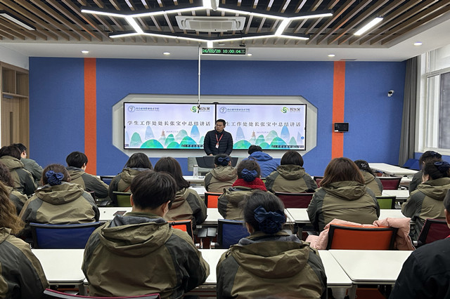 为做好新学期宿舍管理工作,我校学生工作处联合东吴物业,在博学楼410举行了2024年“一站式”学生社区学生生活区工作推进会,学生工作处处长张宝中、东吴物业项目经理薛蒙、学生公寓全体工作人员参加了会议。