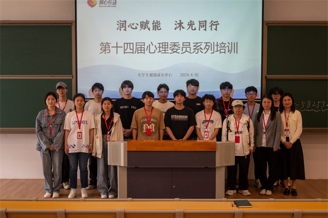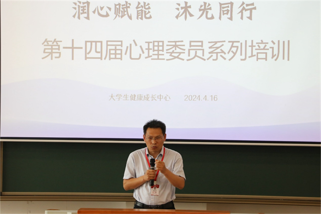 为切实加强我校心理健康教育,帮助学生心理骨干掌握心理健康知识和技能,增强心理委员的专业能力,树立自助互助求助意识,充分发挥朋辈心理互助作用和桥梁纽带作用。2024年4月16日学生工作处大学生健康成长中心在善学楼102教室举行了“润心赋能 沐光同行”第十四届心理委员培训开班仪式,此次开班仪式由大学生健康成长中心杨瑞老师主持,学生工作处处长张宝中发表重要讲话,大学生健康成长中心全体教师、各系心理气象站站长以及全体2023级心理委员及学生会心协部成员参加此次开班仪式。