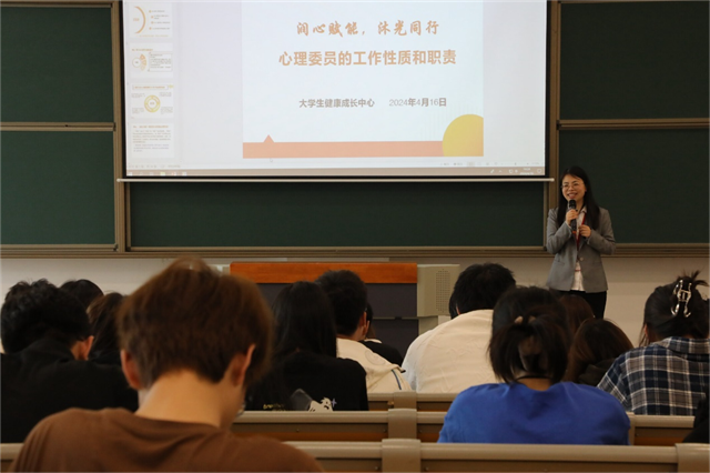 开班仪式结束后,龚智俐老师开展了《心理委员工作职责》主题培训。培训中,龚老师给大家明确了学校设立心理委员的意义以及心理委员在心理健康教育工作中可以发挥出的独特优势。龚老师从普及知识、组织活动和朋辈帮扶三个方面讲述了心理委员的职责后,提出了心理委员工作的四个要“点”:大胆探索,找准工作的切入点;明确职责,突出工作的侧重点;高度警惕,把握工作的关键点;加强联系,稳定工作的支撑点。