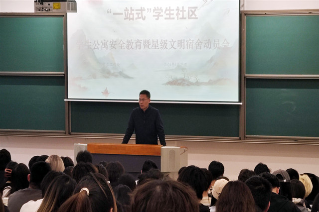 为深入学习贯彻习近平新时代中国特色社会主义思想,落实立德树人根本任务,树立先进典型,发挥榜样作用,加强学生宿舍安全教育与管理,发挥学生宿舍服务育人和环境育人功能,增强学生安全意识,提升学生文明素养,积极营造安全稳定、清洁文明、和谐奋进的宿舍环境,学生工作处于2024年4月25日在善学楼103召开了学生公寓安全教育暨星级文明宿舍动员会,学生工作处处长张宝中、校系生活部部长、生活委员、楼层长参加了本次会议,会议由学生工作处老师张进宝主持。
