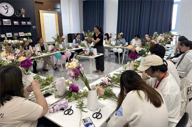 插花艺术不仅是一种创造美感和表情达意的艺术形式,更是一种文化传承。花艺创作带给大家的愉悦和满足更是对心灵的疗愈。通过活动,老师和同学们在忙碌的工作学习中找到了一份宁静与快乐,大家相互交流插花技巧与心得,共同度过了一个温馨浪漫而有意义的下午。