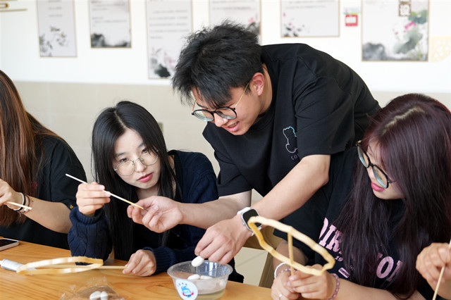 一把蚕丝团扇,执扇轻摇,摇曳起东方之美,将现代美学与古老的非遗体验相结合。5月20日,乐投线上平台(集团)官方网站20名学生在“一站式”学生社区共享空间,开启了一段“体验桑蚕文化领略丝绸之美”非遗蚕丝扇手工制作的奇妙之旅。