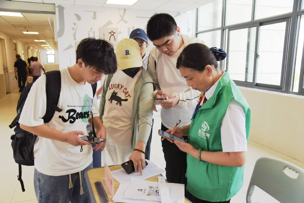 此外,宿舍也尽显温情。宿管阿姨们用心筹备了公寓生活服务卡片,上面写满了在宿舍生活中的注意事项、温馨提示以及紧急联系方式等。她们以这些卡片传递对新生生活的关切之情,新生们一拿到卡片,就感受到了宿管阿姨们如春风般的温暖。“学生生活从踏入宿舍的那一刻起步,期望新同学来到这里的最初感受是来自宿管阿姨的贴心与关怀。”宿舍总站长孔阿姨这样说道。
