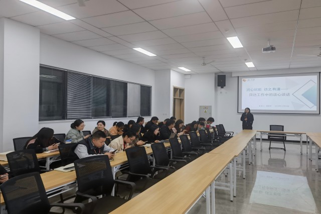 为贯彻落实上级关于加强学生心理健康管理工作相关要求,推进关爱青少年生命健康“润心”行动,提升辅导员开展谈心谈话的能力,充分有效发挥心理育人功能,学生工作处于11月25日在笃行楼401举办了“润心赋能 访之有道—回访工作中的谈心谈话”的主题培训,本次培训由大学生健康成长中心主任龚智俐主讲,专兼职辅导员近30人参加学习。