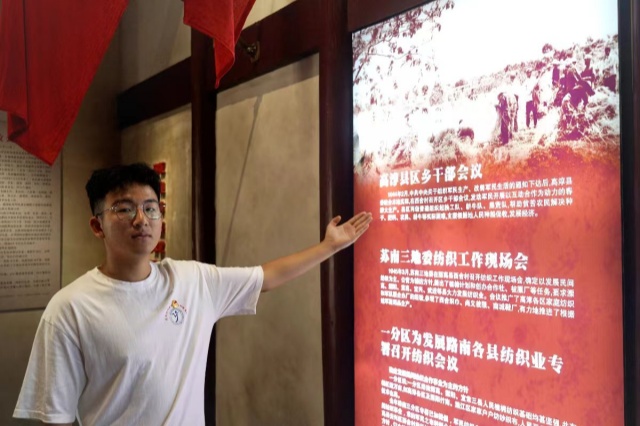 扎根服务:赓续红色精神,传播红色文化。大一下学期,在学校开展的新四军铁军精神演讲比赛中,他通过层层筛选最终取得了校赛二等奖的好成绩。2023年上半年,他加入学校正在建设的高淳溧水新四军文化研究基地,并通过考核顺利成为该基地师生宣讲团成员,积极协助宣讲团老师和同学开展一系列实践研学活动。在团队实践期间,他积极宣传红色文化,利用自己所学的文化知识,不断普及新四军铁军精神,长期前往西舍红色教育基地开展志愿宣讲服务,助力当地经济发展。