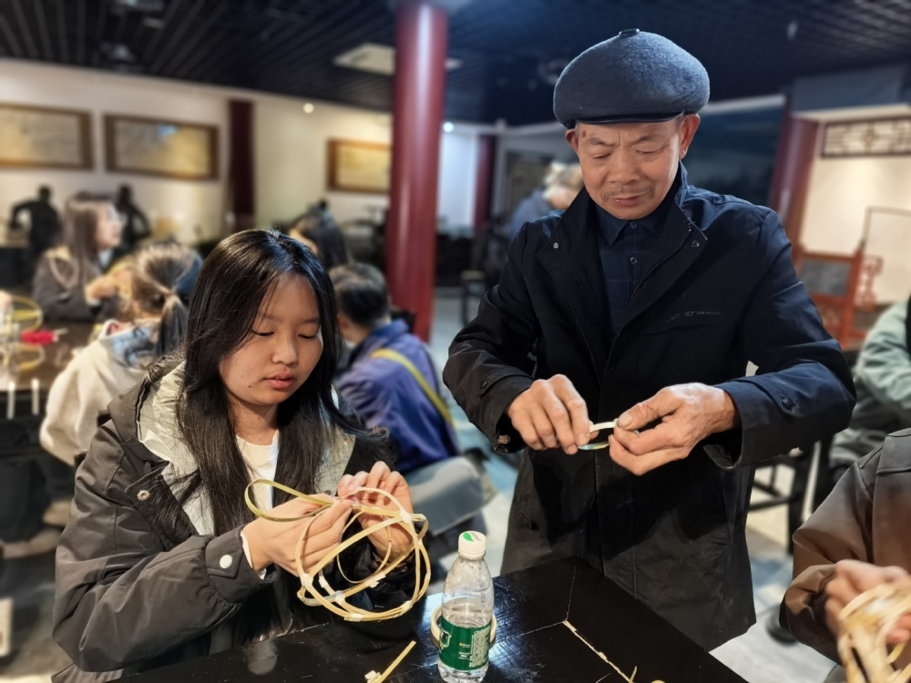 在南京高职园黄启睿老师和慢管办工作人员的悉心引导下,学员们依次参观了民俗馆、杨厅以及新四军第一支队司令部旧址,深入触摸了高淳“金陵第一古街”的历史沧桑。在非物质文化遗产传承人的指导下,学员们更是亲手体验了竹篾选材、编织技法等传统工艺,深刻感受到了“指尖上的高淳”所承载的百年匠人精神。智能制造231班的马星洋同学在体验过程中感慨万千:“看似简单的竹编工艺竟然有200多种不同的编织手法,这次的体验让我真正体会到了‘慢工出细活’这句话的深刻含义。”