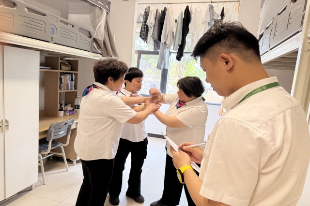 为深化“一站式”学生社区综合管理体系建设,凝聚协同育人工作合力,着力打造一支专业化、精细化的宿舍管理服务队伍,我校于2025年5月14日在生活服务区组织开展了宿管老师岗位技能竞赛活动。本次竞赛采用理论考核与实践操作相结合的赛制模式,评估了宿管老师的职业素养与业务能力,为推进宿舍服务品质提升与效能优化提供了创新驱动力。