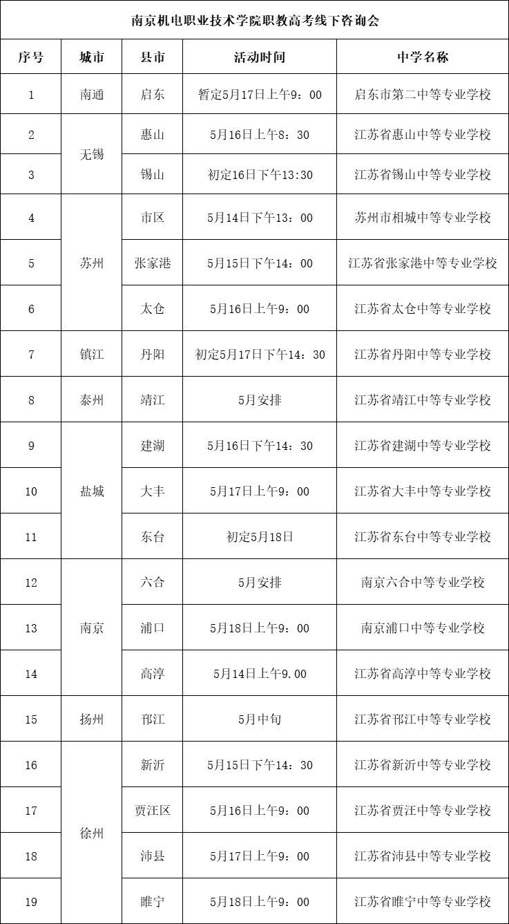 2023年我校参加中职职教高考专科第一批次招生咨询会情况一览表: