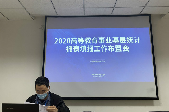 2020年10月15日,质控办在弘德楼107召开了“2020年度高等教育事业基层统计报表填报工作布置会”,会议由质控办主任李清主持,院办、教务处、人事处、学工处、培训处、后勤处、图书馆负责人及部门数据员共同参会。