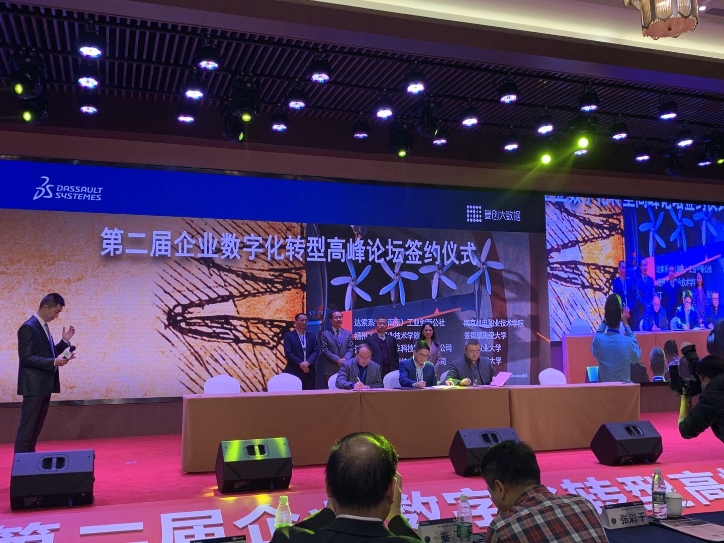 2020年11月25日,世界智能制造大会首场活动——第二届企业数字化转型高峰论坛签约仪式在南京未来科技城举行,签约仪式上,乐投线上平台(集团)官方网站智能制造学院与法国达索系统公司(南京)工业创新公社正式签署产学研战略合作协议,并达成共建南京机电达索创新中心的共识。乐投线上平台(集团)官方网站副院长刁爱军、智能制造学院执行院长潘理平、专业教师吴芬等参加合作签约仪式。