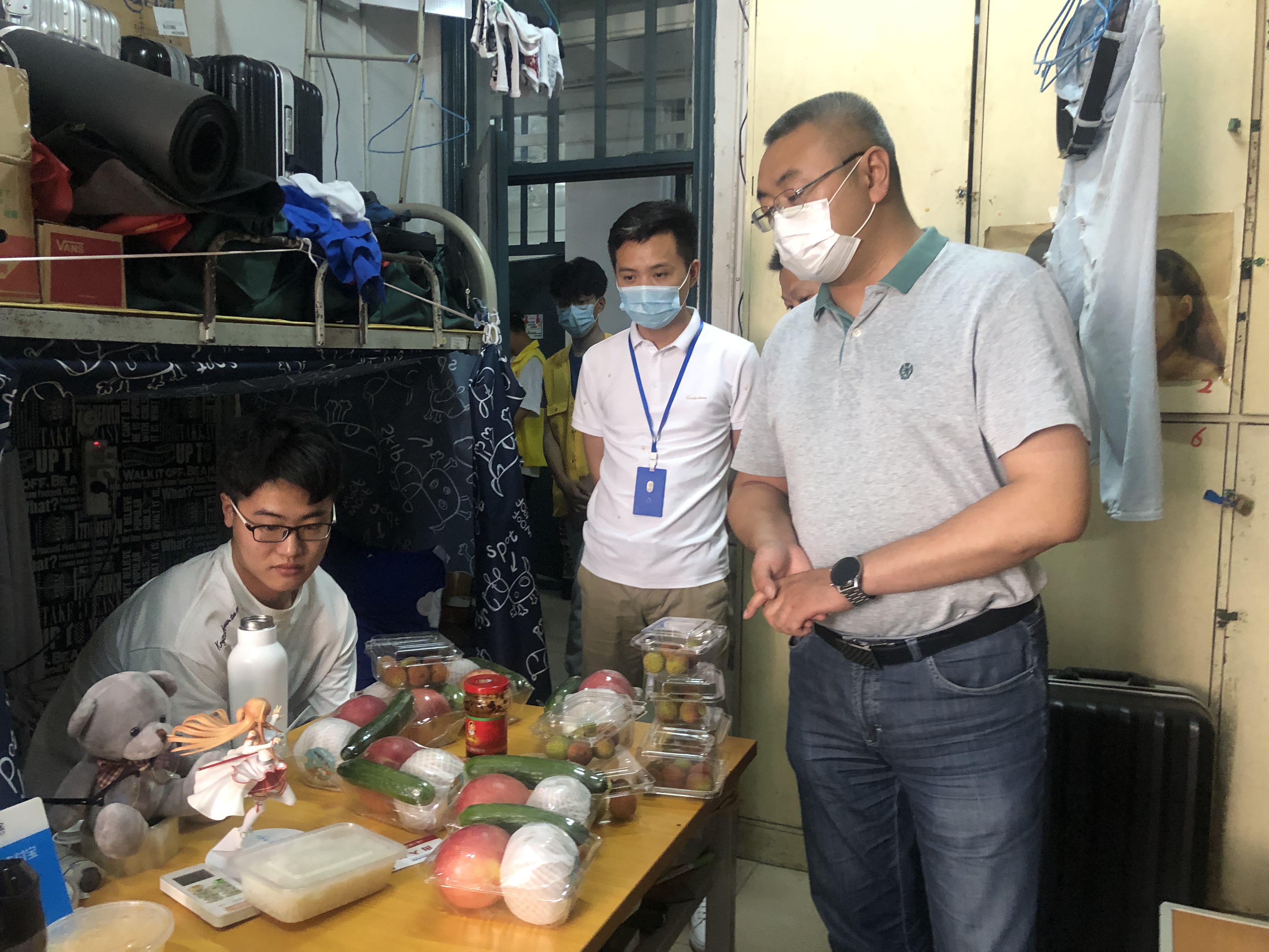 暮春微风,初夏暖阳,5月的机电校园里终于迎来了青春的活力。为了确保同学们的安全,进入校园后需要在宿舍开始为时14天的观察期,5月25日这一天,自动化工程系为每一位同学们都悄悄地准备了一份水果。学院党委委员、副院长刁爱军,自动化工程系主任范世祥、书记高水冕,走访宿舍并慰问返校学生,深入了解疫情期间返校学生的生活、学习及防护情况。