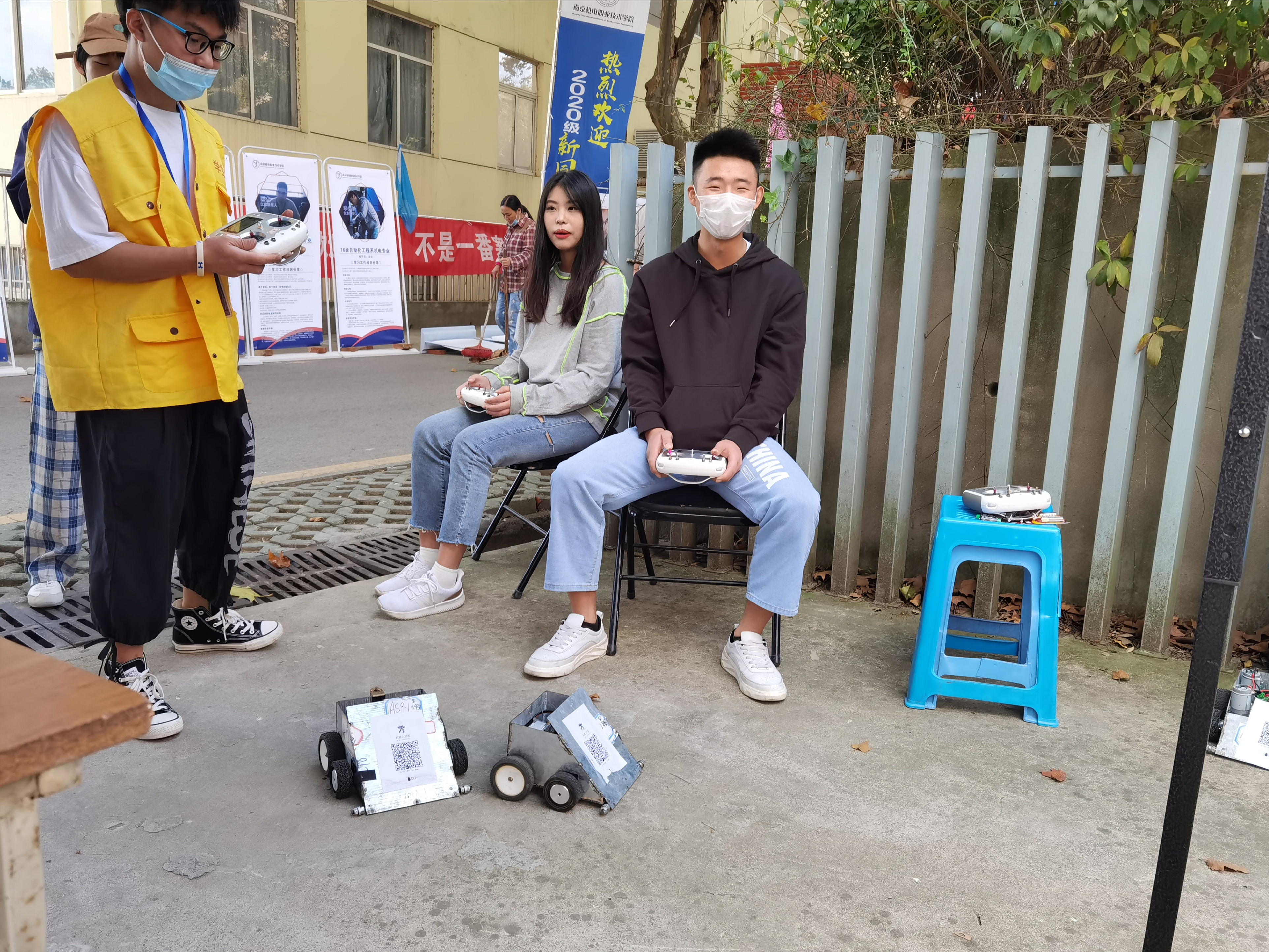 机器人小车来回穿梭 为新生展开创客教育第一课