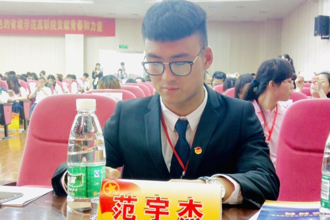 范宇杰,男,浙江庆元人,出生于1997年6月,2018年毕业于机电一体化技术专业,担任班级团支书和系分团委副书记。
