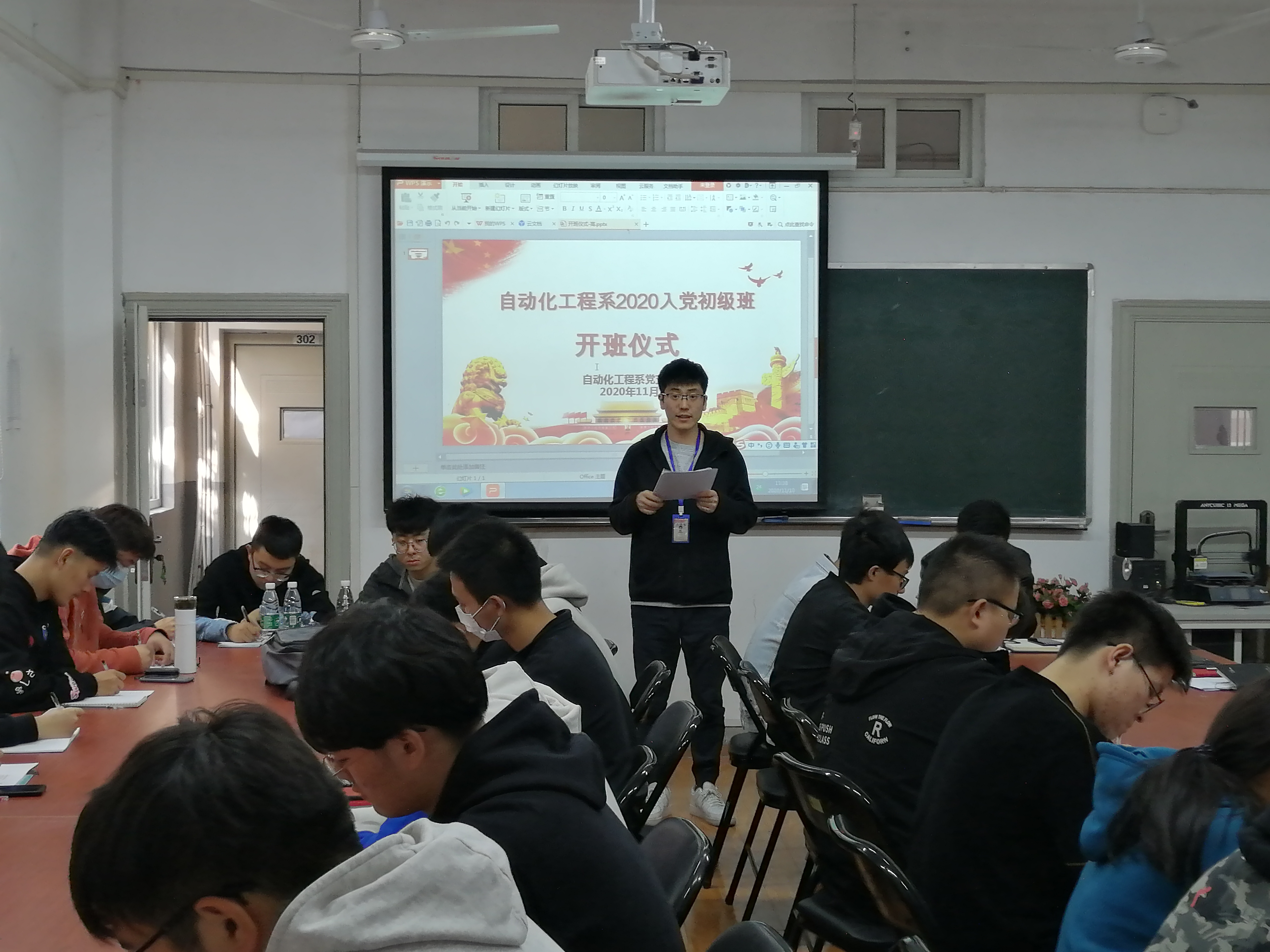 11月10日下午,自动化工程系第十一期党课学习初级班在博学楼301隆重开幕,本次党课共计40名学员。开幕式由自动化系党支部宣传委员潘久伟老师主持,党支部书记高水冕发表讲话并参与第一讲授课:共产党人的初心和使命。