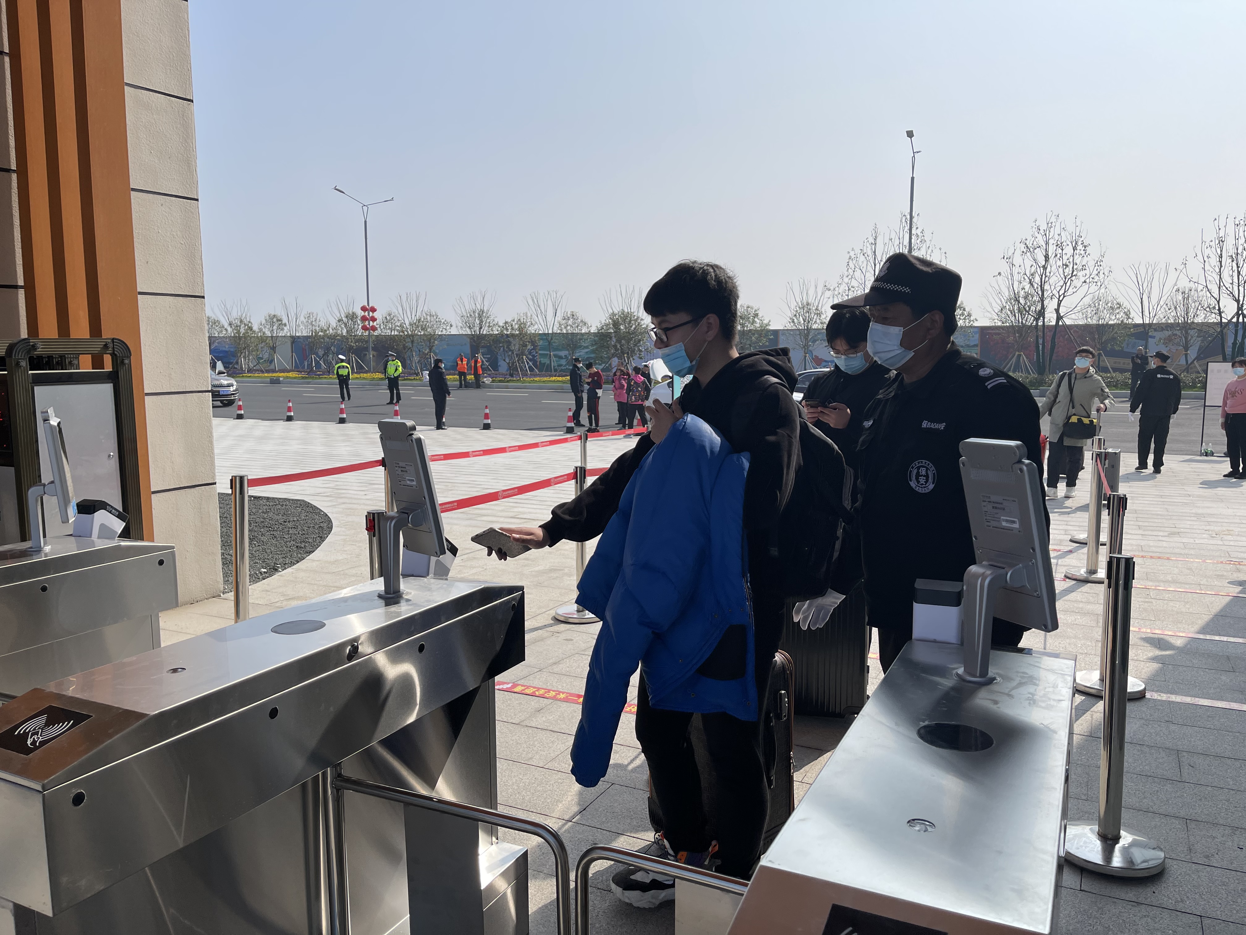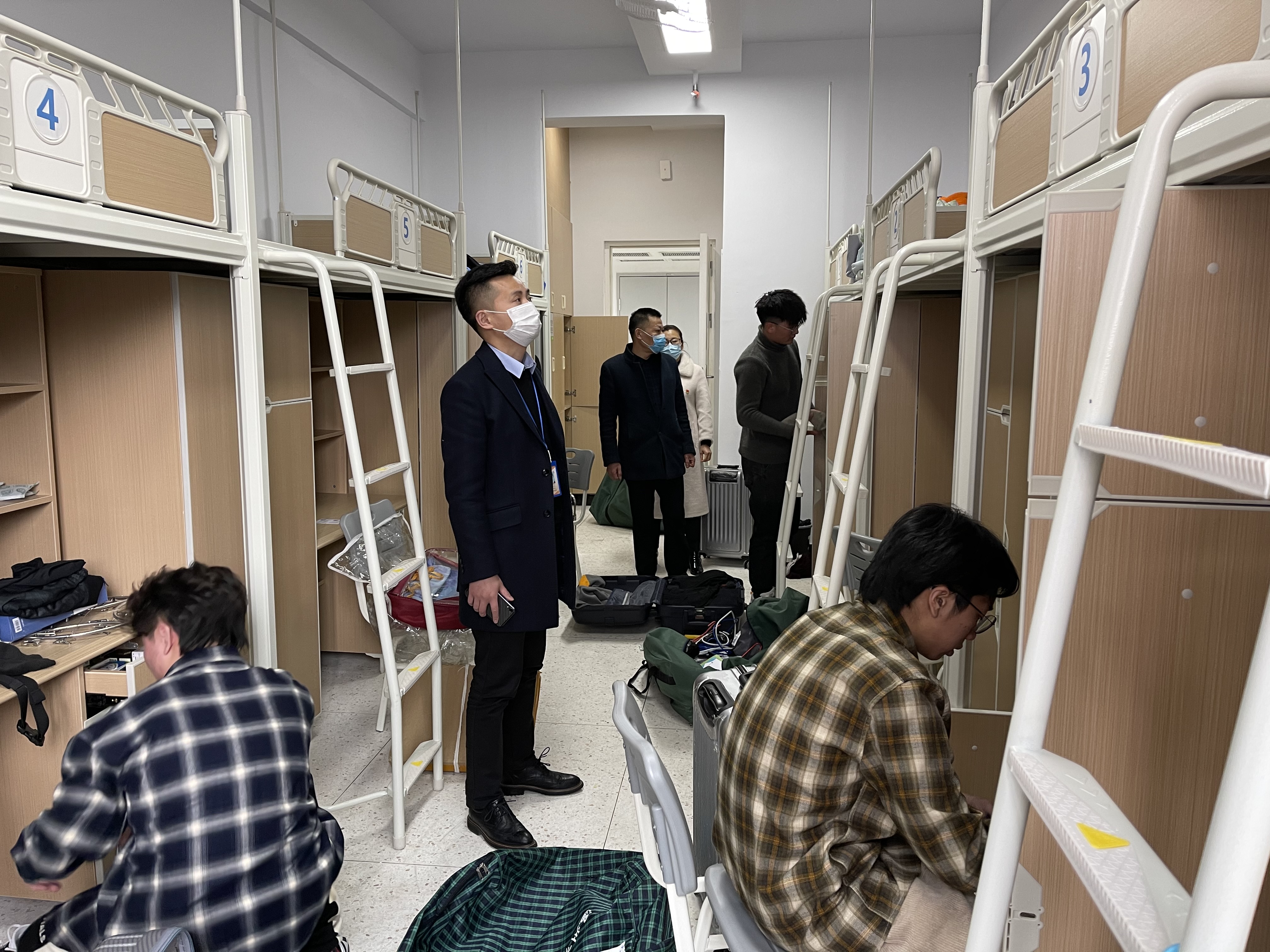 省内报道的学生,进校后,由教师志愿者带领,放好行李后,前往指定地点做核酸检测;完成检测后,取行李前往宿舍区。学生可以通过扫描二维码查询自己的新宿舍信息。省内学生通过人脸识别后,扫描今日校园二维码,可以进入校园;学校安排了学生志愿者帮忙同学们搬运行李。