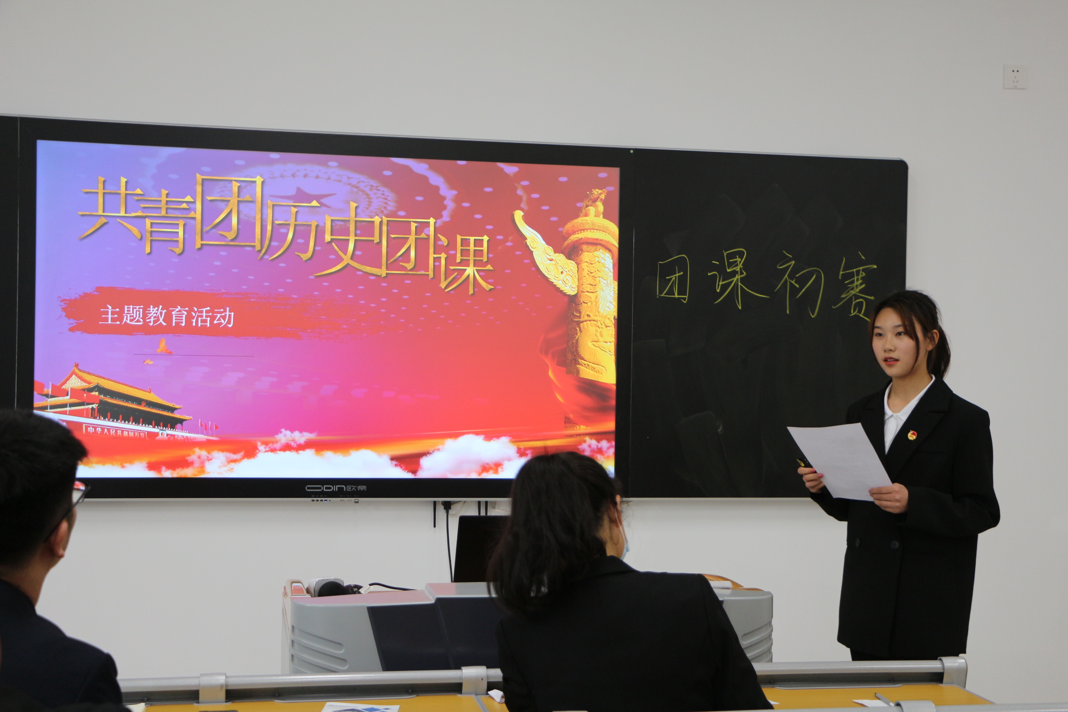 比赛在主持人激昂的开场白中拉开了序幕。初赛采用的是说课的形式进行,说课对选手的课程设计能力要求非常高,不仅要对准备的题目了如指掌,还需要了解同学们的喜好设计及表现形式。整个比赛过程中,选手们仍自信满满,滔滔不绝,毫不逊色,博得了评委老师和台下观众的阵阵掌声。从说课过程中足以看出选手们对团课分析与授课方法的发掘潜力,选手们都对团的工作有着自己独特的认知。比赛结束后,学生副书记李荣康对本轮比赛做出点评,他提出:在以后的时间里,各班团支书能够多参加类似于这种形式的交流活动提高自己的综合能力,平时能够用更新颖夺目的方式为同学们上好团课,更好地完成团委下达的各项工作。