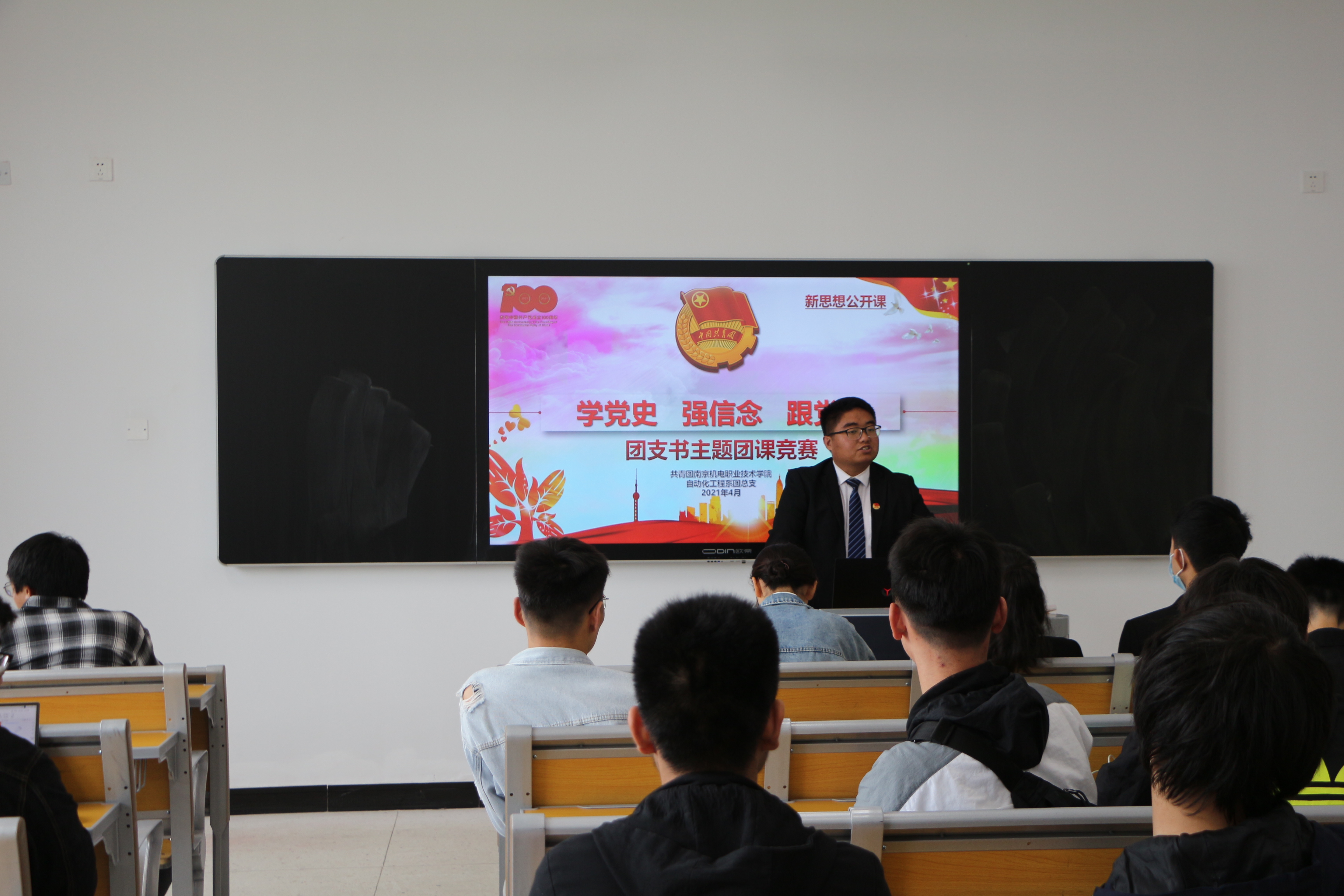 为庆祝中国共产党成立一百周年,使广大团员能在辉煌的党史中汲取精神力量,我系团总支于4月27日下午在博学楼212教室开展“学党史、强信念、跟党走”团支书主题团课竞赛活动。自动化工程系2019级、2020级全体团支书参加了本次竞赛。此次活动由团总支学生副书记李荣康主持。