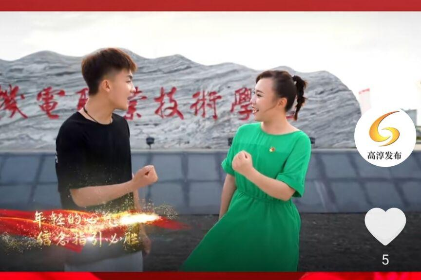通过层层筛选,最终推选主题团课竞赛一等奖获得者,机电一体化技术207班团支书鲁汛东作为学生代表参加 MV的拍摄宣传。